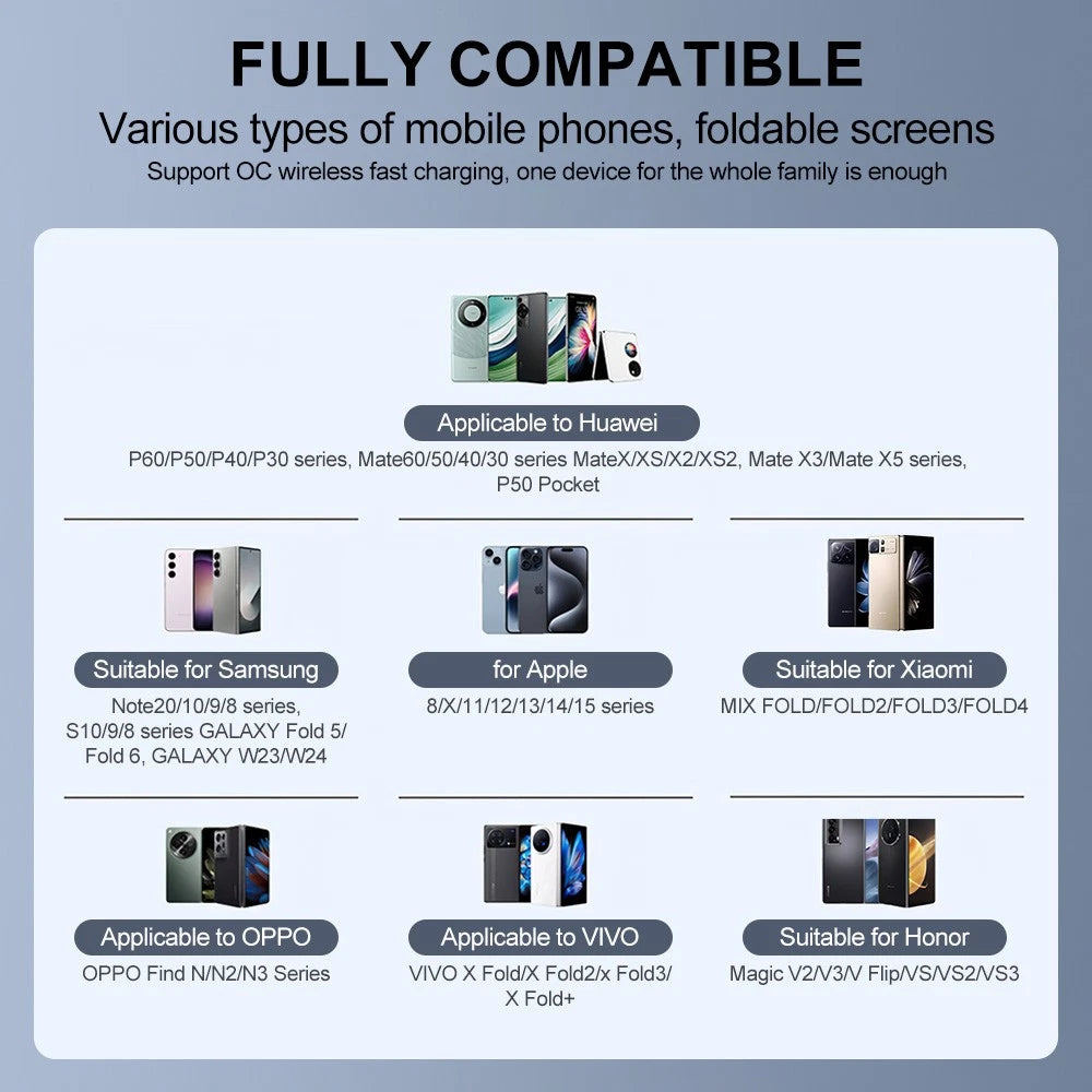 Wide Compatibility: This fast charging cell phone holder is fit for various types of phones, whether foldable, straight, or large-screened, ensuring hassle-free use.